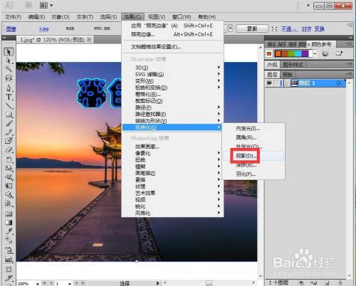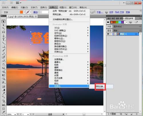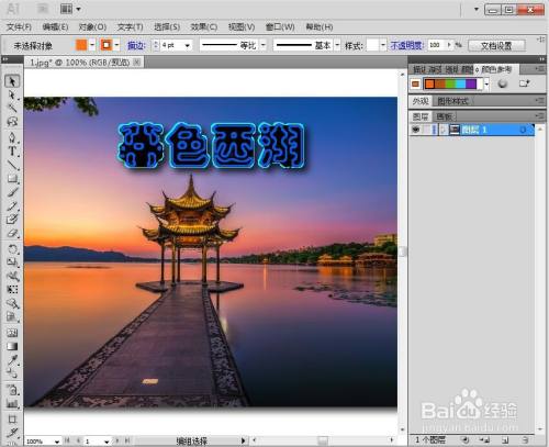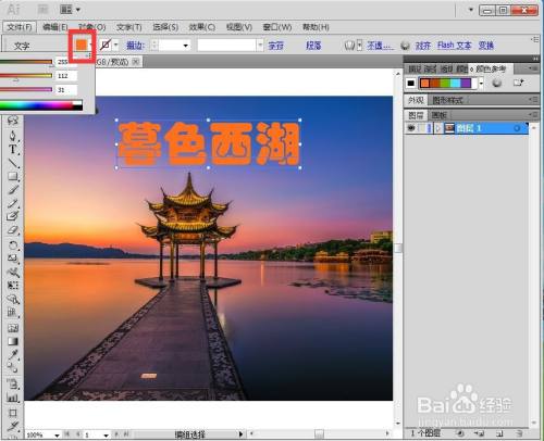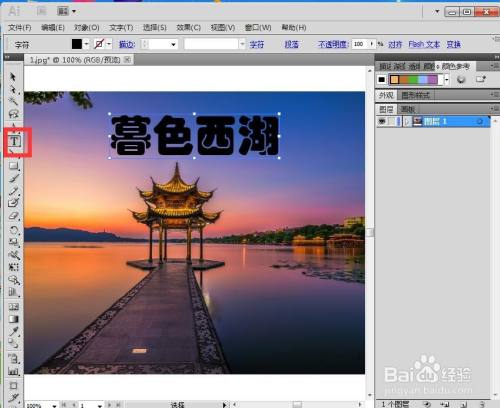 点击文字东西,设置好字体、字号,输入暮色西湖;