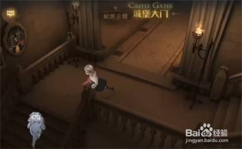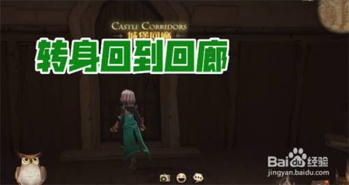 需要从城堡大门一向走,走到走廊的门口;