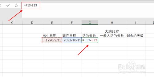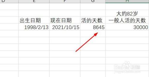 接着输入等于号,用【此刻日期】-【出生日期】,得出已经在世的天数。