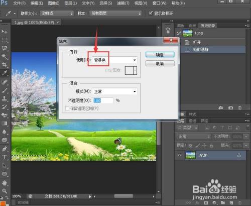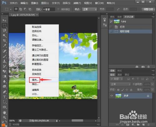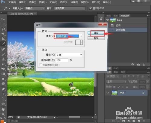 3、按右键,点击填充,选择内容识别,按确定。