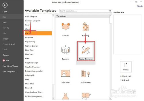 1、打开Edraw Max,在剪切画中中双击设计元素;