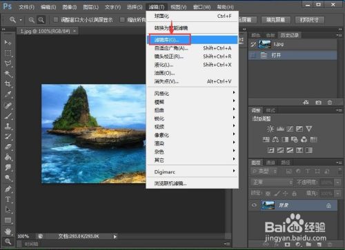点击滤镜菜单,选择滤镜库;