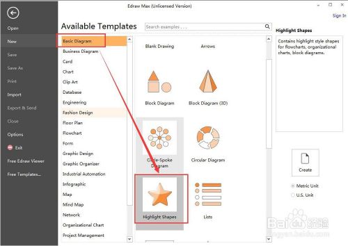 1、打开Edraw Max,在根基画图中双击高光图;
