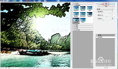 设置参数,将描边宽度设为12,描边压力设为8,对比度设为14,按确定;