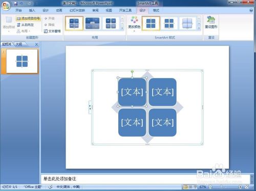 4、给根基矩阵填充好文字内容并添加一种smartart样式。