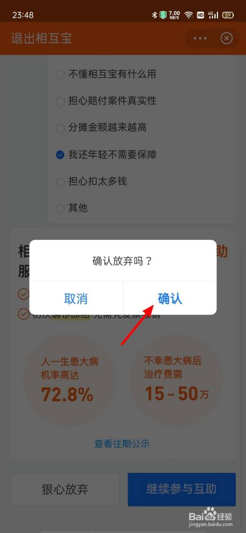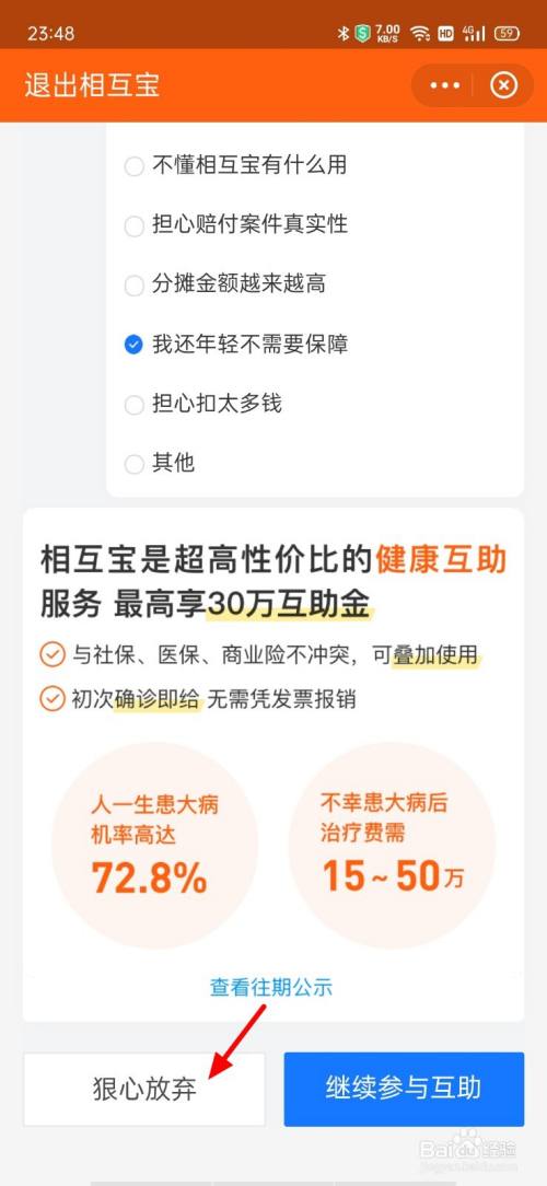 呈现选项,点击狠心抛却。