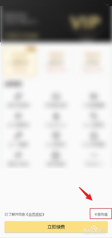 在打开的页面中,点击右下方的卡密充值,如图所示: