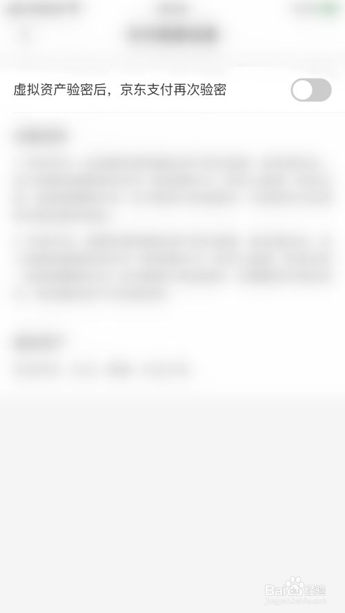支付验密设置界面点击“虚拟资产验密后,京东支付再次验密”后面的圆点