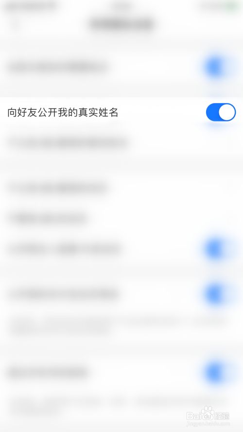 常用隐私设置界面点击“标的目的老友公开我的真实姓名”后面的圆点