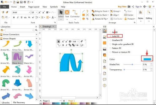 我们就在Edraw Max中建立好了一个蓝色波形箭头。