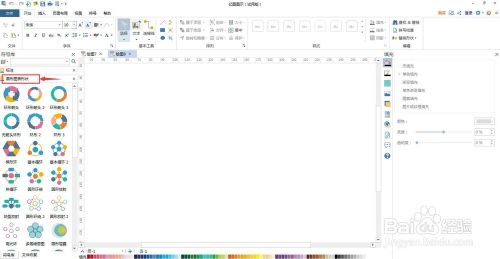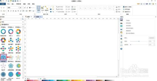 2、进入圆形图形图表符号库中,找到并双击块型放射;