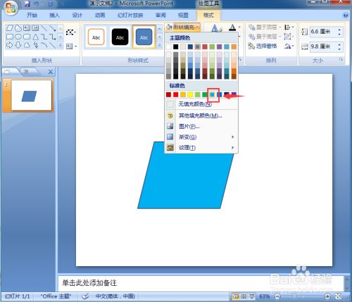 我们就在ppt中给平行四边形添加上了蓝色和暗影结果。