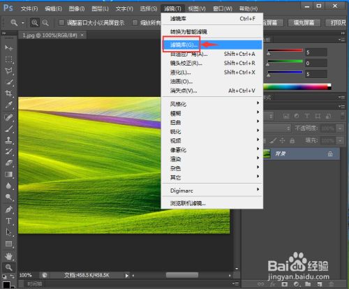 点击滤镜菜单,在打开的下拉菜单中点击滤镜库;