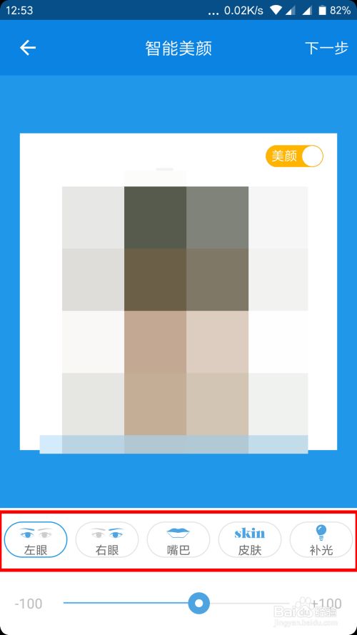 这一步就是针对五官的调整,什么大眼睛小嘴巴等等的一些调整这里都可以调整。调整完后点击右上角的【下一步】就可以保留出来了。