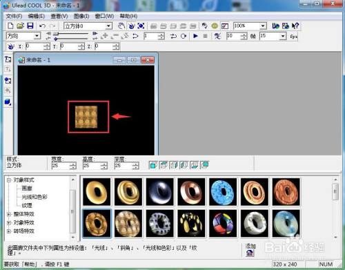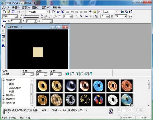 在ulead cool 3d中呈现一个正方体;