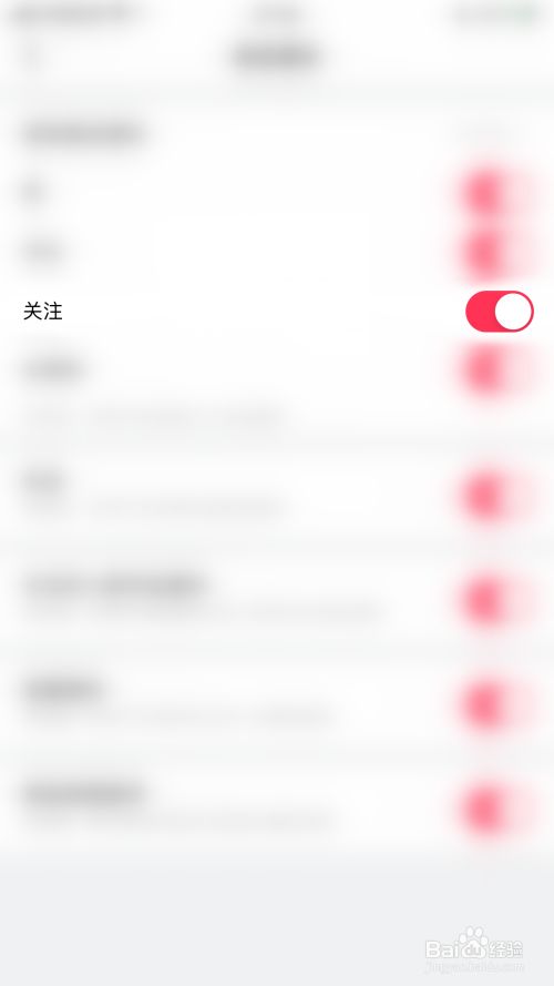 推送通知设置界面点击“存眷”后面的圆点