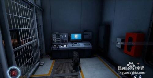 接着进来之后,从中心的铁蒺藜穿曩昔。过来之后操作一下旁边的电脑,把使命地址的门打开。