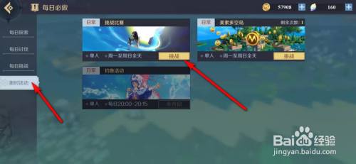 工具/原料荣耀9xEMUI10.1.0.138神角技巧1.2.6方式/步骤1在神角技巧手游,点击“每日必做”。2点选“限时活动”。3点击“挑战”每日挑战角逐。4点击“挑战”。5点击“挑战”。6遁藏障碍快速移动捡拾星星尽快达到终点即可完当作挑战获得奖励,点击“退出”返回。END