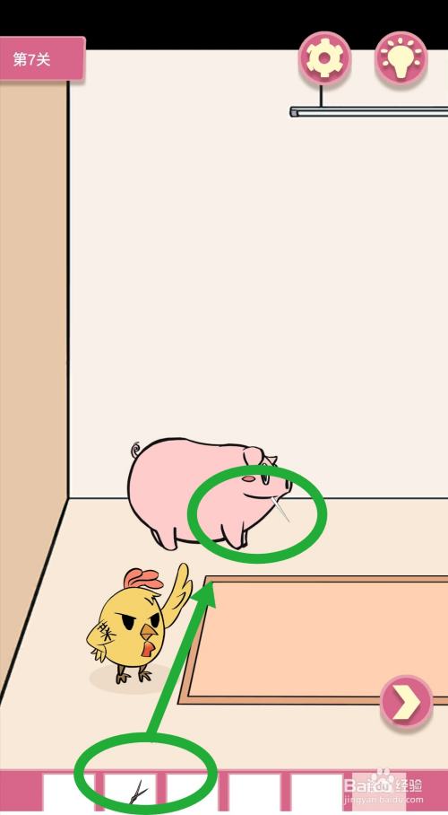 最后,用【钥匙】打开门放小鸡分开,游戏就过关了。
