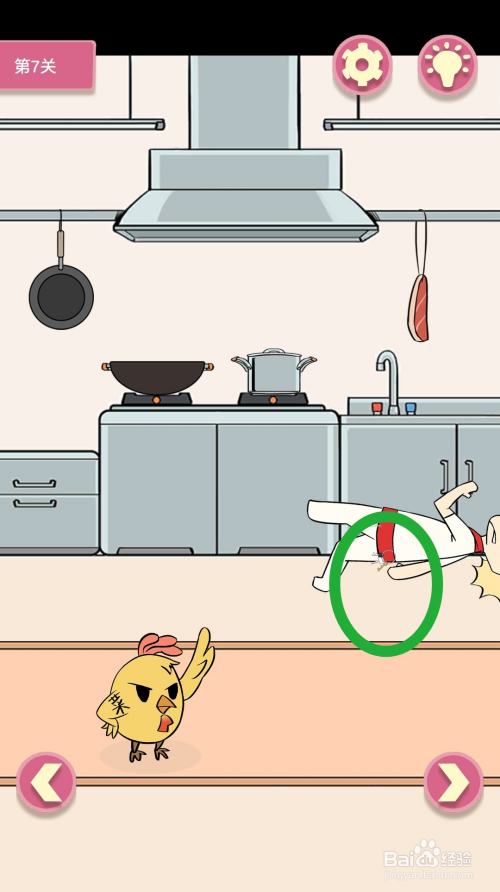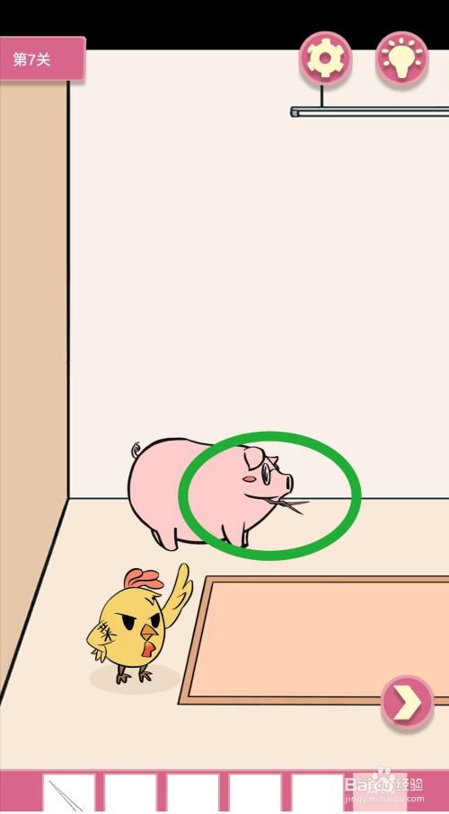小猪打喷嚏时喷出的针会刺中厨师,这样就可以拿到【钥匙】了。