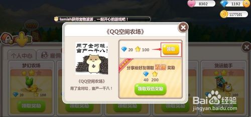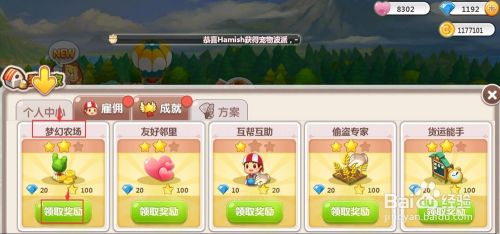 我们就当作功地领取了梦幻农场当作就奖,获得了20钻石和100经验值。