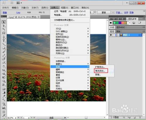 我们就在AI中给图片添加上了龟裂痕和海洋波纹结果。