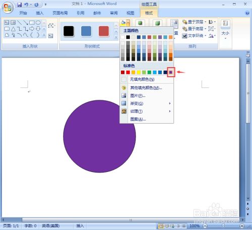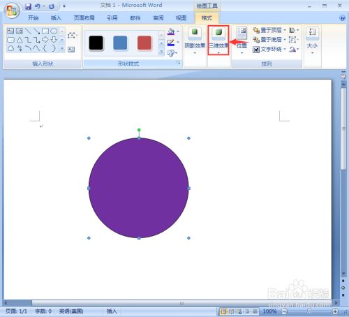 我们就在word中给圆形添加上了紫色三维结果。