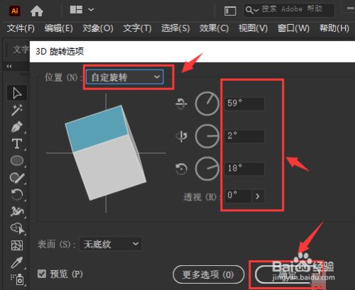 5.在打开的3D扭转选项设置中,将位置选项设置为自定扭转结果,点窜参数后点击确定保留