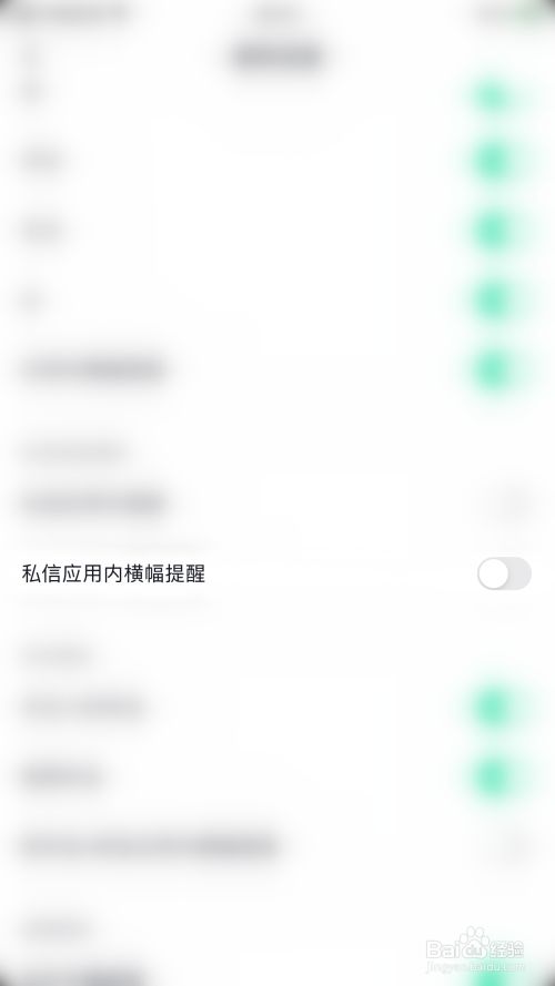 通知设置界面点击“私信应用内横幅提醒”后面的圆点