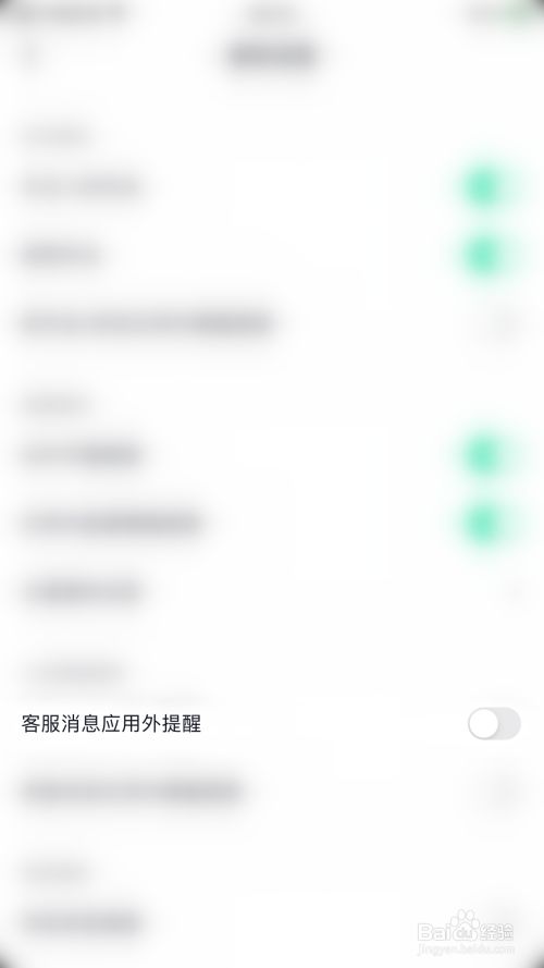 通知设置界面点击“客服动静应用外提醒”后面的圆点
