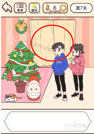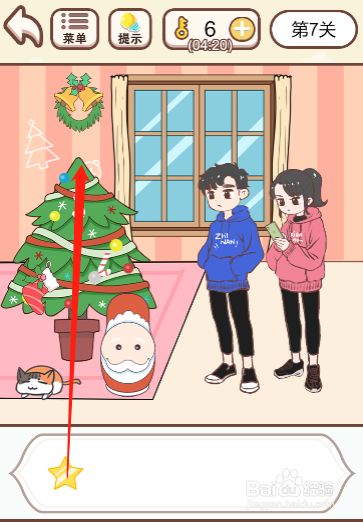 工具/原料vivoS安卓6方式/步骤1首先我们点击拉开房间里面的窗帘2然后拿到失落落在地的臭袜子3之后将臭袜子交给男本家儿角4随后拿到男本家儿角头上的星星5接着将星星放到圣诞树上6这样子就可以顺遂经由过程本关了END