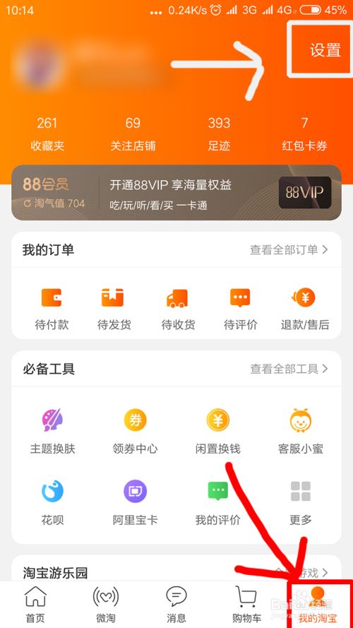 然后点击右下角【我的淘宝】,接着点击右上角的【设置】。
