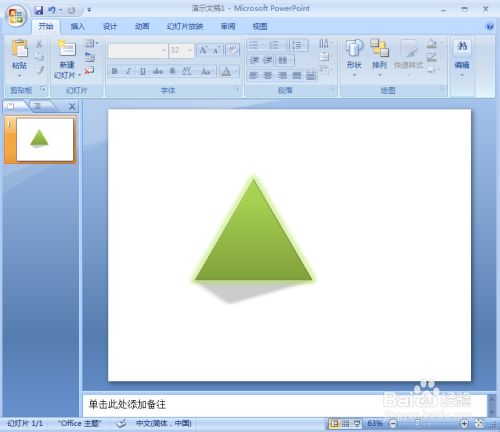 我们就在ppt中给三角形添加上了绿色发光和暗影结果。
