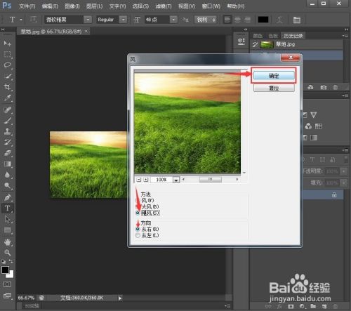 我们就当作功地给草地图片添加上了风的结果。