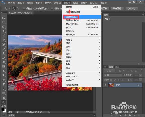 点击滤镜菜单,选择滤镜库;