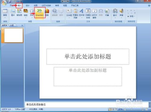 1、打开powerpoint,点击插入,选择SmartArt;