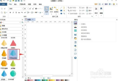 2、在三维框图符号库中选中平顶金字塔,用鼠标将它拖放到编纂区中;