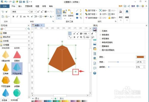 点击单色填充,选择需要的颜色,给平顶金字塔填充好新的颜色;