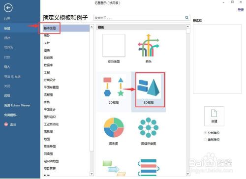 1、打开亿图图示,在根基画图中双击三维框图;