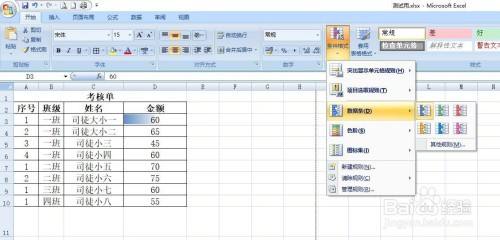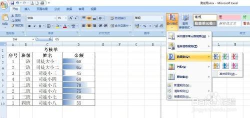 四、弹出窗口中选择“数据条”后,选择方针颜色法则。