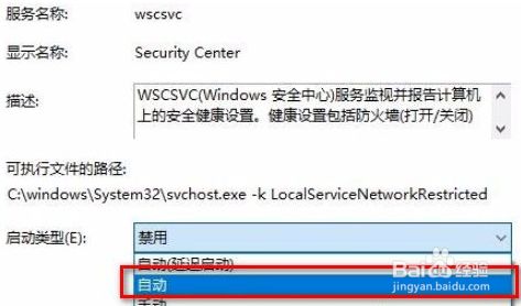 第四步,在Security Center属性窗口中,启动类型点窜为“主动”。