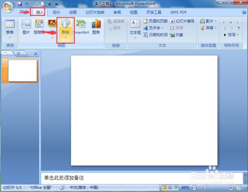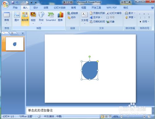 我们就在powerpoint2007中建立好了一个泪滴形。