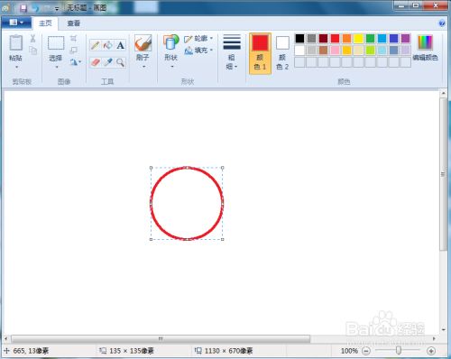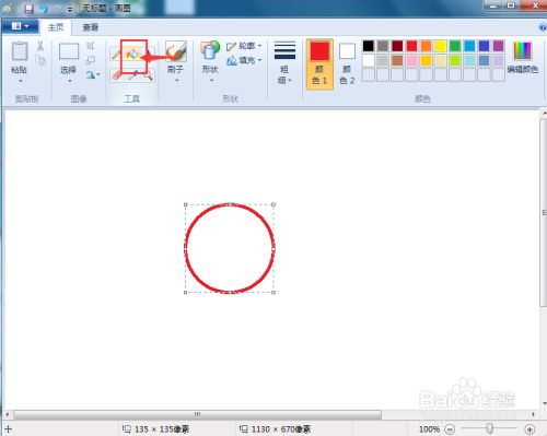 在圆形内部点击鼠标左键,填充上红色;