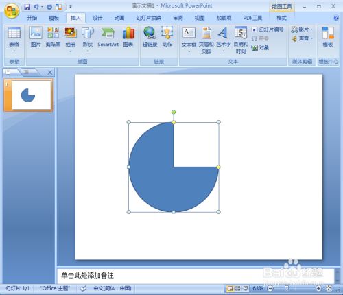 按下鼠标左键,拖动鼠标,呈现一个饼形;