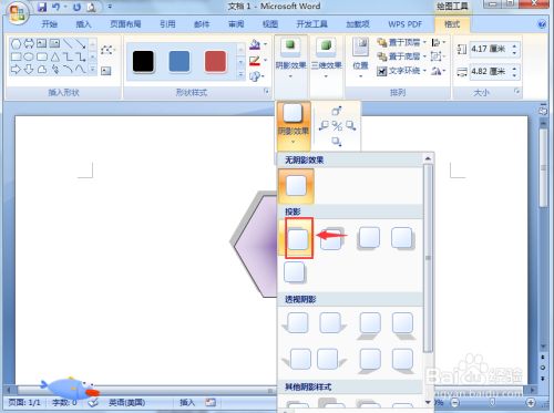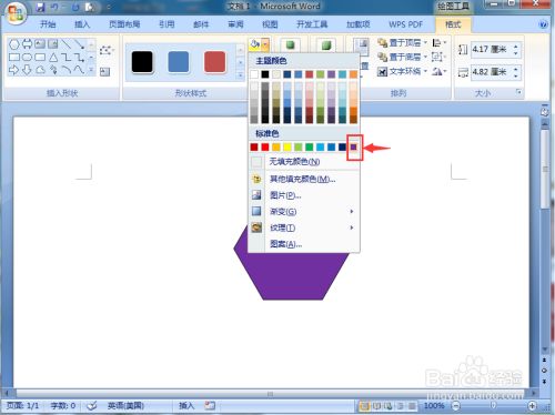 我们就在word中建立好了一个紫色渐变六边形;