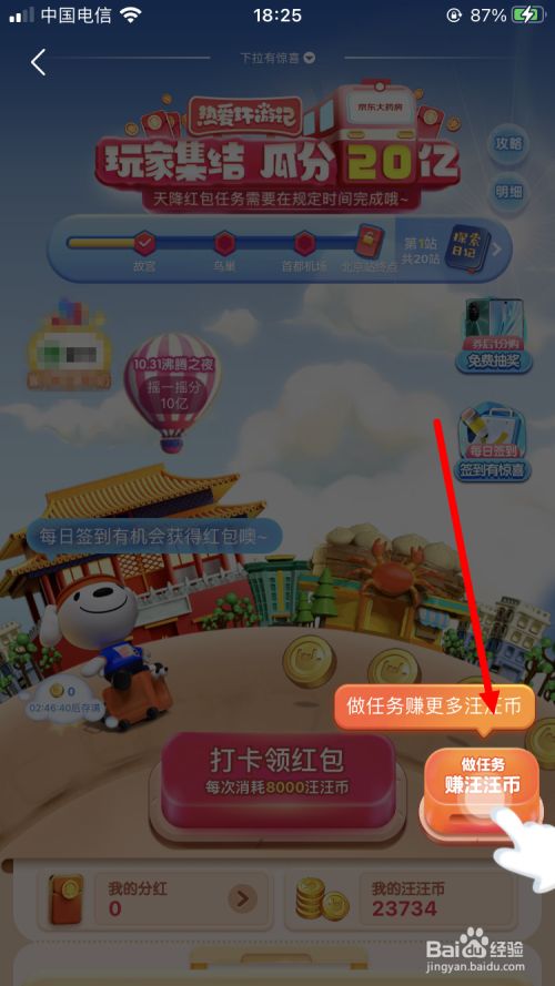进入活动页面后,先获得24000汪币,点击【高兴收下】。