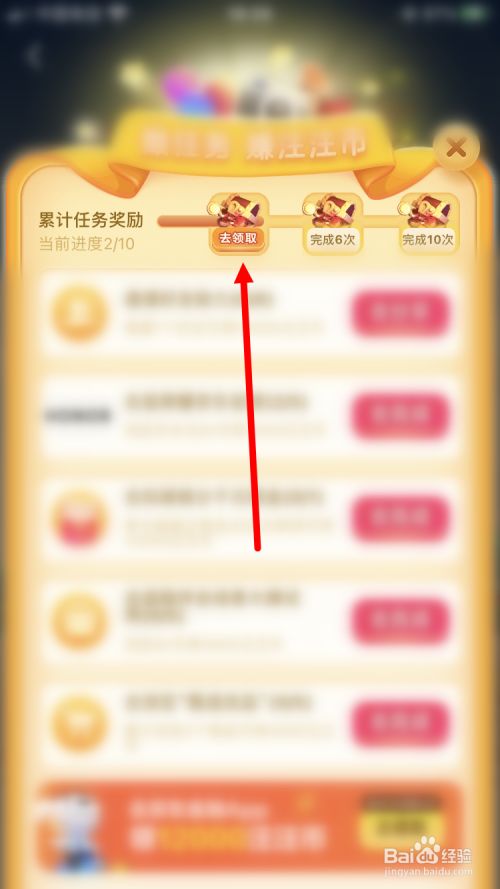 当完当作的使命数达到2次、6次、10次,可以点击【去领取】获得奖励。