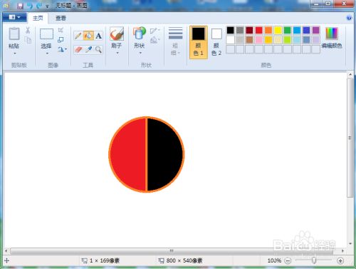 我们就在绘图中绘制好了一个红黑参半的圆形。