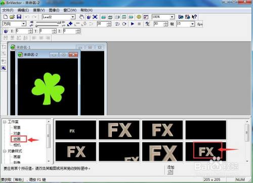 点击播放按钮,我们就在Envector中建立好了一个扭转的绿叶动画。
