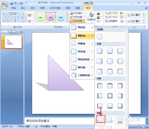 我们就在ppt中给直角三角形添加上了紫色细微结果和暗影。